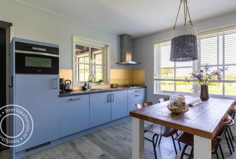 'Berend' ist ein geräumiges Ferienhaus im Erdgeschoss mit einem geräumigen Wohnzimmer und einer offenen Küche. Die Küche ist mit einer Kombi-Mikrowelle, geschirrspüler, Kalt-Freeze-Kombination, Kochset mit vier Gruben und einem Senseo ausgestattet. Es gibt zwei Schlafzimmer mit jeweils einem dobbelbett. Sie sind mit lockeren Matratzen und Bettdecken ausgestattet. Das Badezimmer ist mit einer Dusche und einem Waschbecken ausgestattet. Die Toilette ist getrennt.